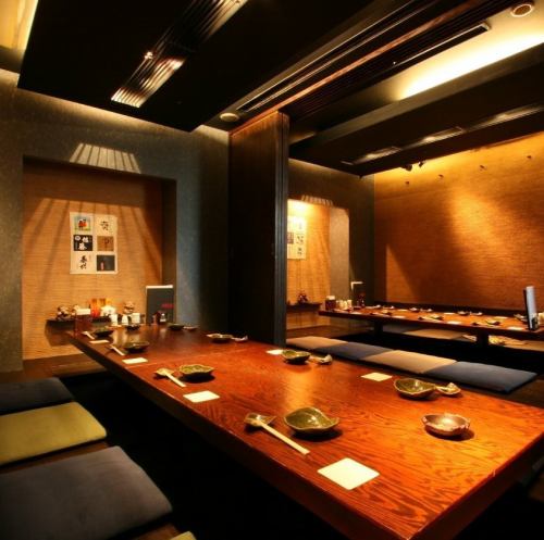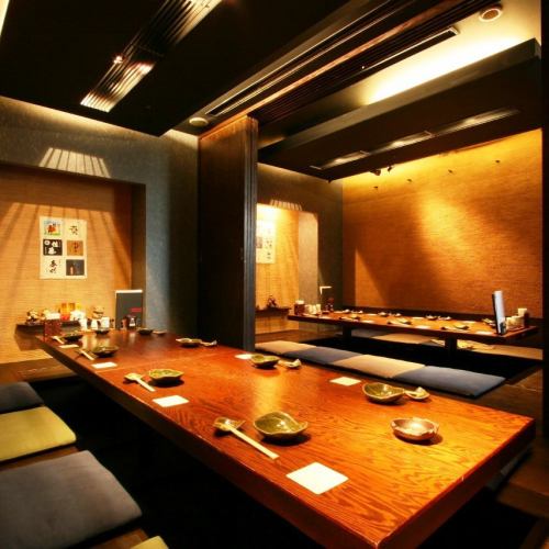 純和風のつくりの店内はゆっくりお酒を楽しむにはぴったりの空間。6名様~13名様用(テーブル席)/6名様~24名様用(堀こたつ席)/1名様~4名様用(BOX席)最大45名様まで◎貸切も承ります!