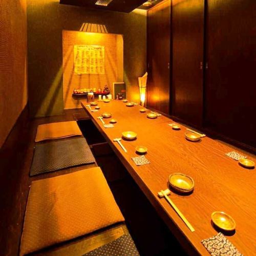 10名前後用の堀こたつ席。仕切りがあるので人数に応じて個室利用OKです。